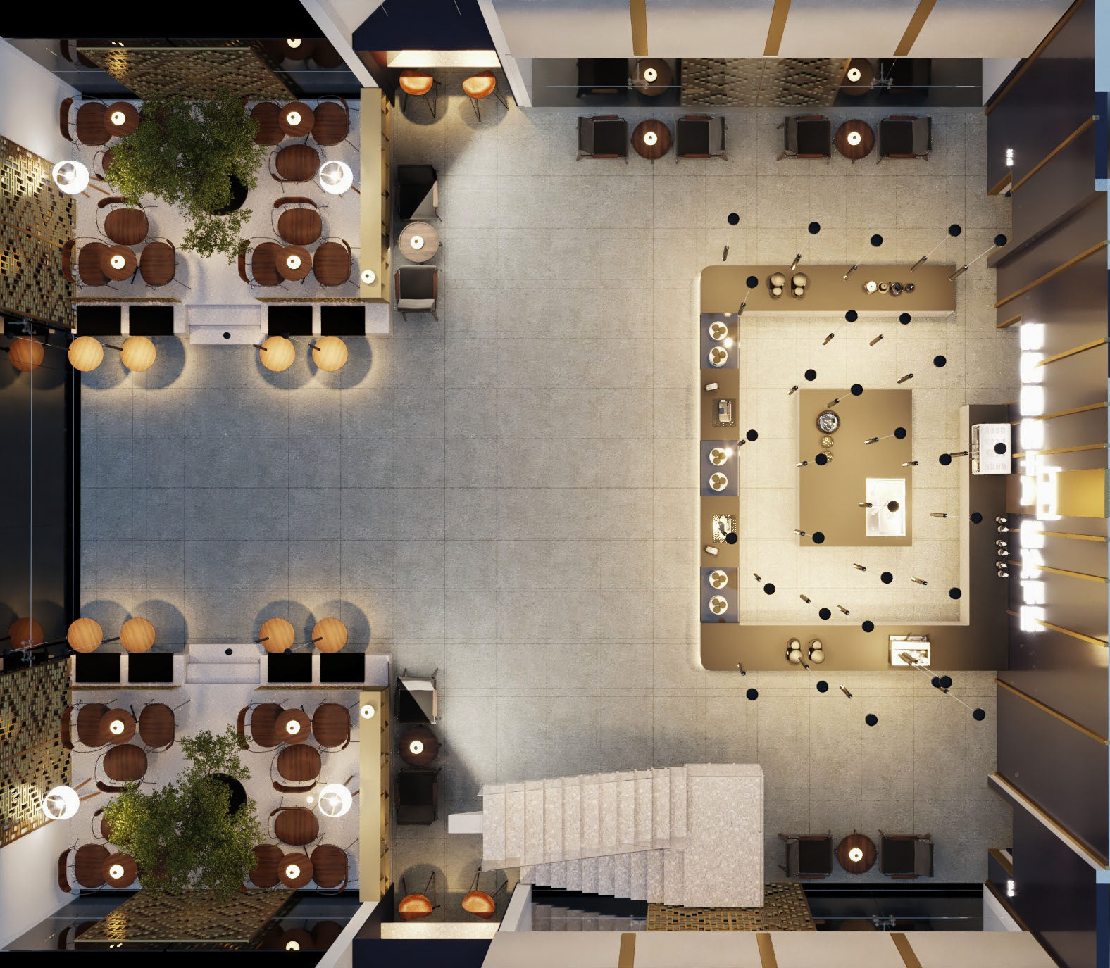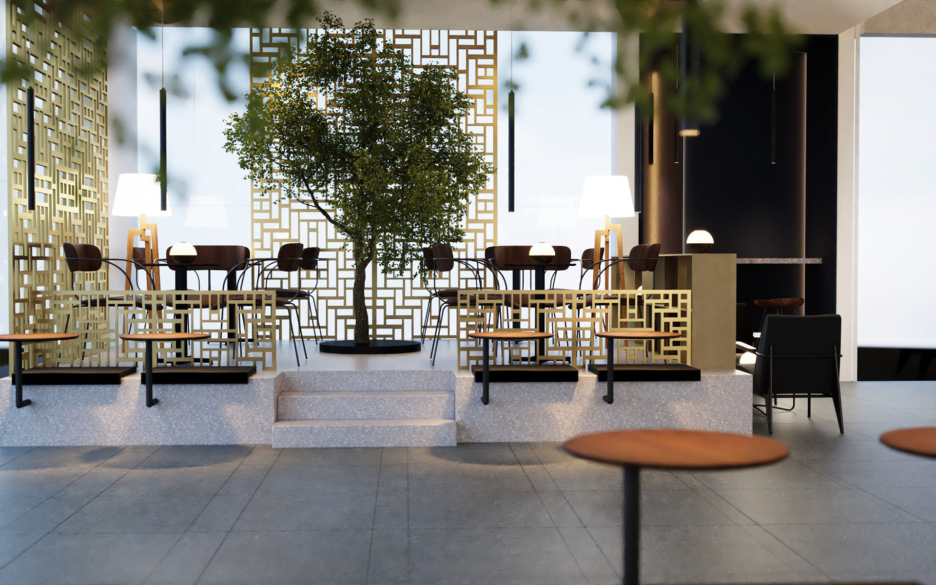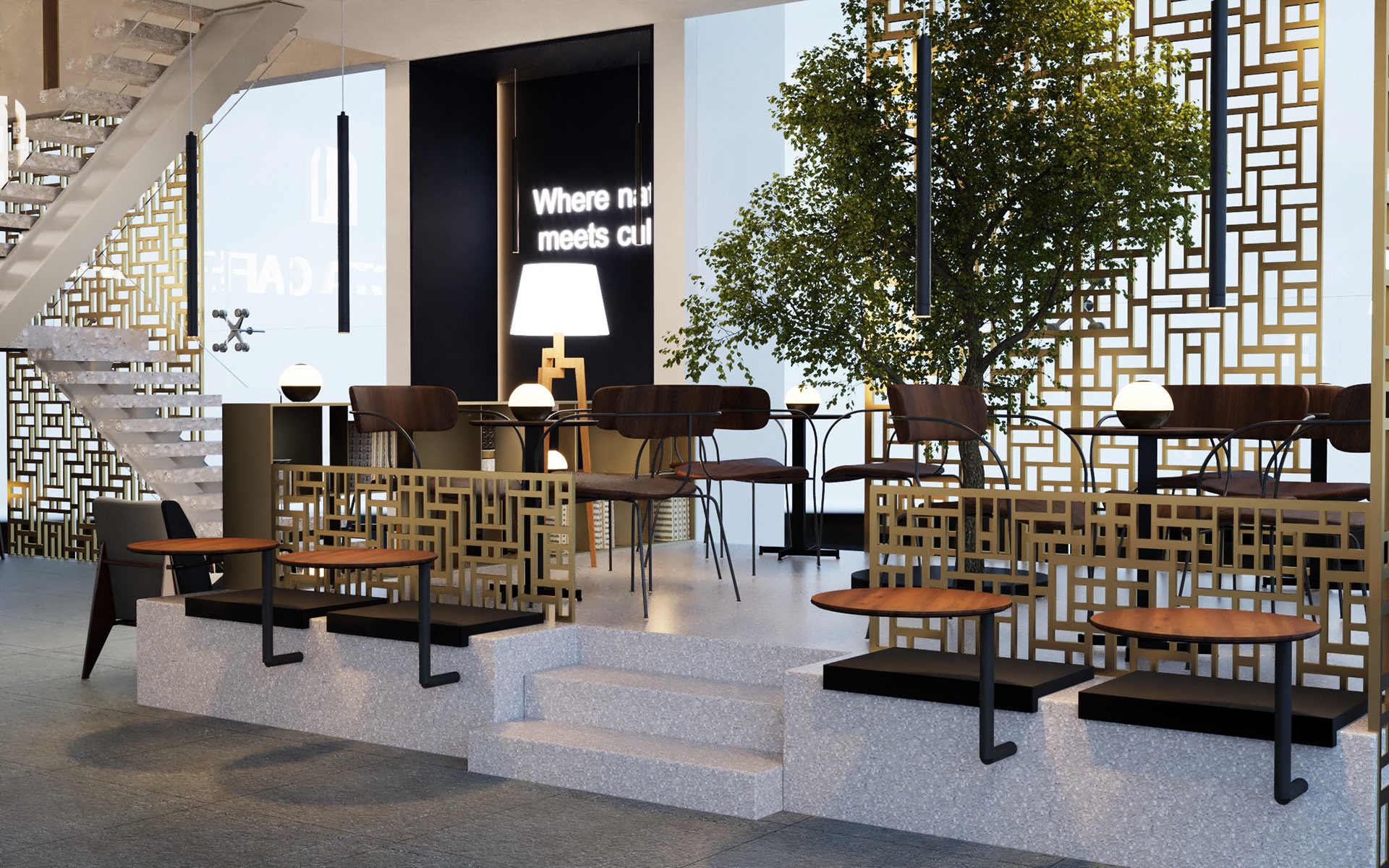 A luxury franchise coffee shop interior design. We developed a new concept and identity to the existing brand and applied it to many branches in Saudi Arabia and Bahrain .